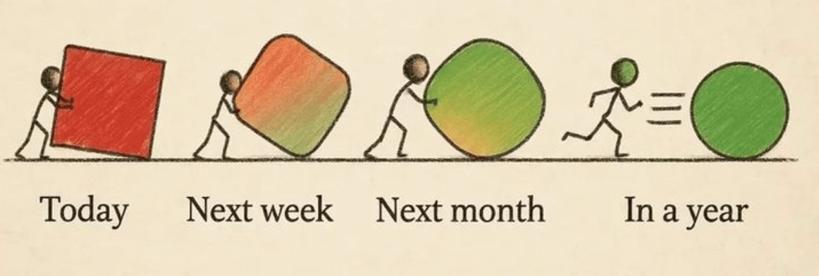 Ela te coloca aqui. Agora. No presente e no presente, quase sempre existe um próximo passo possível, mesmo que pequeno.